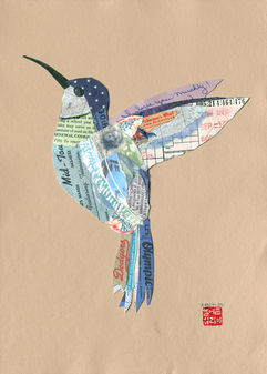 "Cultural exchange inspires me because I believe that when we absorb the influence of a particular experience we also leave an imprint. The purpose of my work is to promote connectivity with the viewer by offering unexpectedly recognizable materials within my art and my mechanism is storytelling through mixed media collage. Each piece of art tells a tale informed by the origins of the bits and pieces used to build tactile layers into a cohesive visual.
