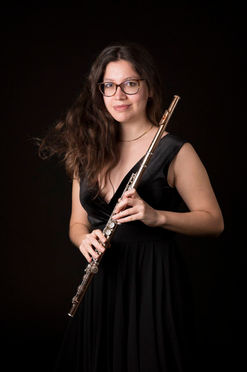 Gabriela Clelia Cuna (1997) attained her Flute Master and Piccolo postgraduate degrees cum laude at the Conservatorio G. Verdi in Milan, studying with D. Collino and N. Mazzanti. She further specialized at the Imola Academy Incontri col Maestro. Alongside her duo activity, she actively performs with orchestras, collaborating with various ensembles and conductors in festivals like MilanoMusica and MiTo, and with institutions such as Teatro Carcano in Milan. She won several solo and chamber music award, in particular in 2023, she won third prize in the Angelo Persichilli Competition, Piccolo category, and in 2025 she was a finalist in the Serverino Gazzelloni International Competition.
