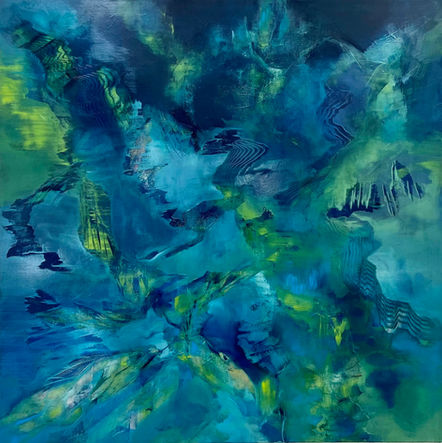 Across my varied series, I use both abstract and representational approaches to examine these changing perceptual states. Natural elements such as water, sound, rhythm, and biological time structures function as metaphors for mutability, immersion, and altered awareness. My abstract works often echo micro–macro relationships found throughout the natural world—including within the body—systems in constant motion and reorganisation.